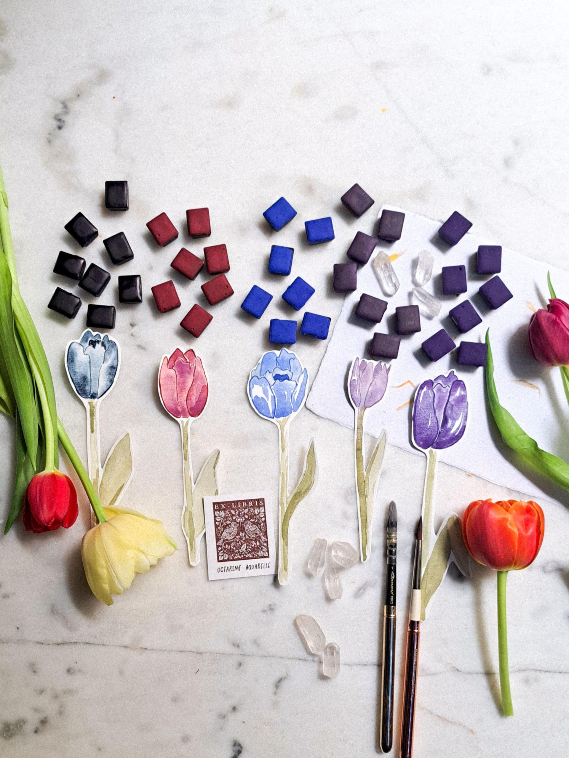 Le set Ex-Libris est un coffret de cinq aquarelles artisanales françaises, véganes, extra-fines et riches en pigments. Fabriquées à Nantes avec savoir-faire, elles offrent des couleurs profondes, parfaites pour explorer la lumière et la matière dans vos créations d’aquarelle.
